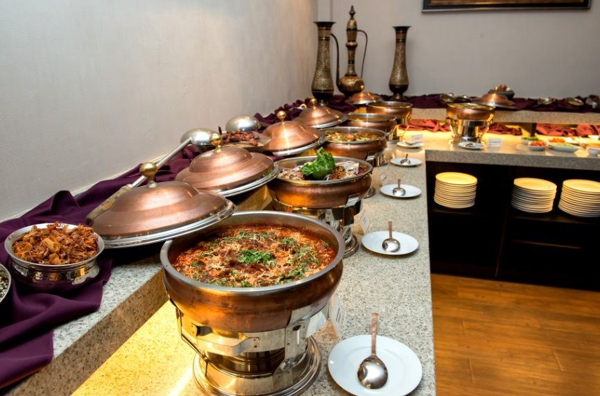 We can provide buffet setup, warmers, serving staff, tableware, and themed décor as add‑ons.