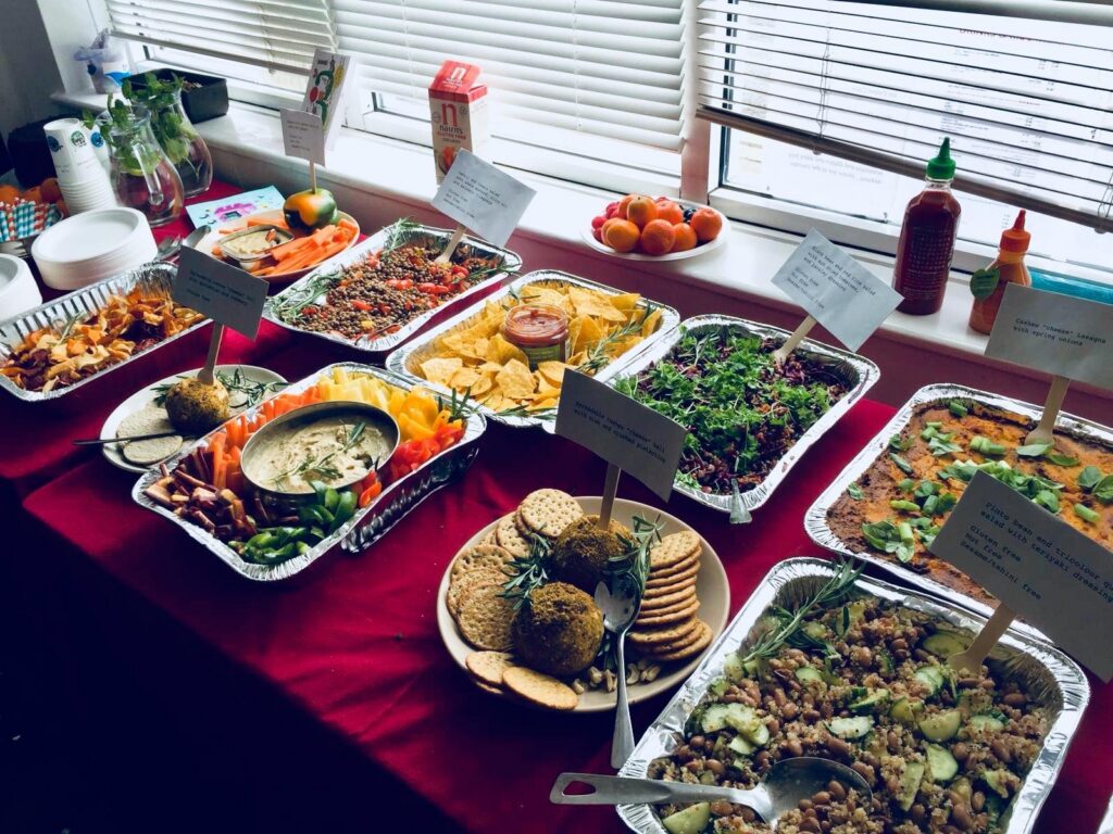 Drop‑off buffet or full‑service setup with warmers, chafing dishes, and professional staff. Tableware and décor available.